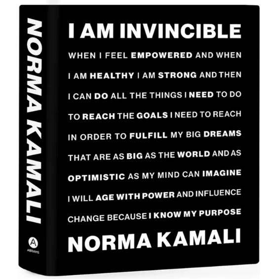 I Am Invincible by Norma Kamali ā a 40th bday gift that I love everything about, from the recipes to the career wisdom to the unabashed and hard-earned self-love